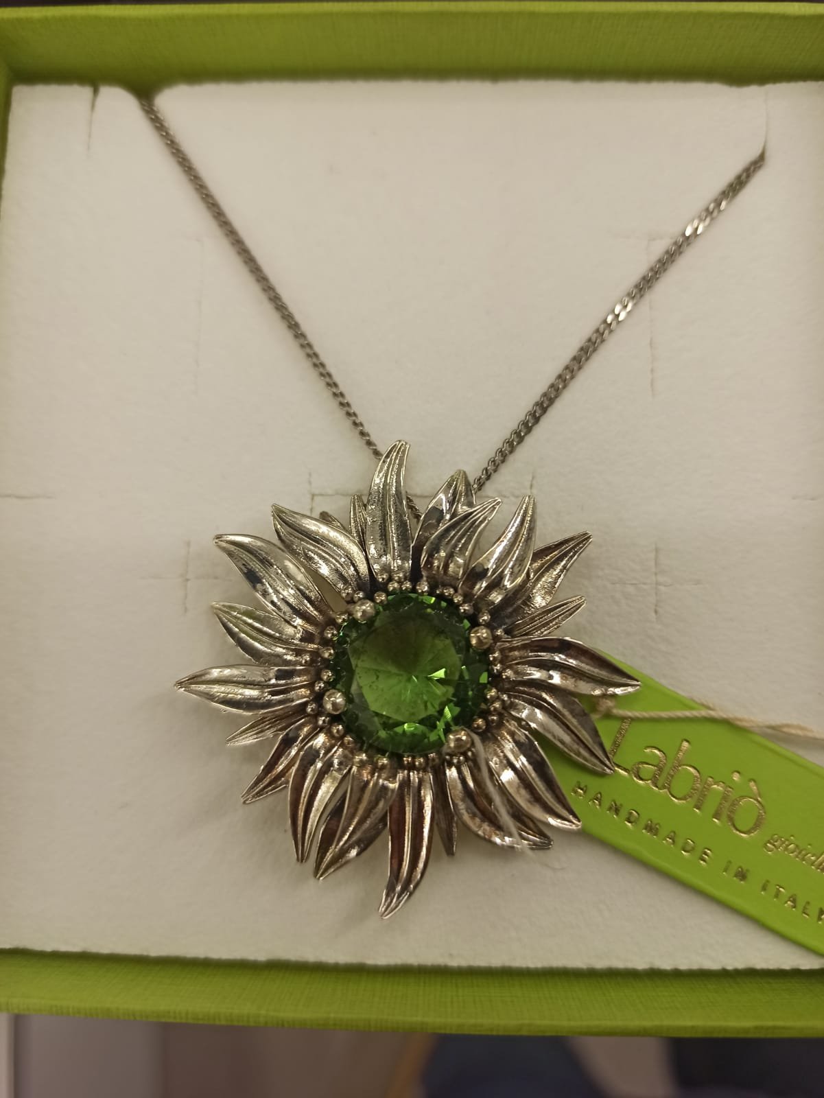 HomeProdottiDonnaCollaneCollana Girasole Collana Girasole218.00€ Argento 925% con pietra quarzo colore smeraldo. Misura collana: 50 cm Collana Girasole quantità Acquista ora Categorie: Collane, Donna, Prodotti Product ID: 386 Descrizione Descrizione Collana in argento 925%. Girasole grande con pietra quarzo colore smeraldo. Misura collana: 50 cm Prodotti correlati Collana argento e rodiatura in oro 90.00€ Acquista ora Orologio Tommy Hilfiger 189.00€ Acquista ora Anello Girasole 238.00€ Acquista ora